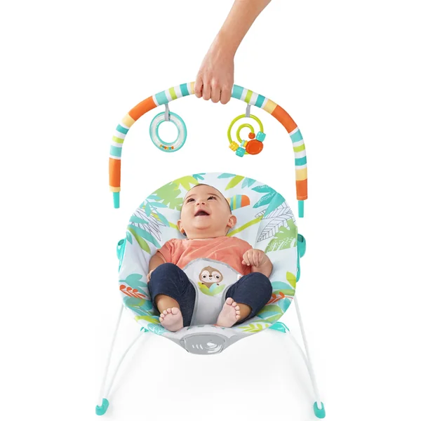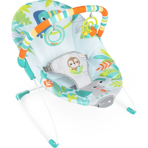 Le transat vibrant Rainforest Vibes de Bright Starts est l’endroit le plus sauvage pour s’asseoir et jouer ! Préparez-vous à de larges sourires lorsque votre bébé commencera à tendre la main vers les deux jouets colorés suspendus au-dessus. Votre petit adorera le clic et le hochet avec des perles. Installez-vous confortablement sur le canapé – votre bébé sera en sécurité et à portée de vue dans le transat avec des pieds antidérapants et une ceinture de sécurité à trois points. Lorsque le plaisir dans la jungle touche à sa fin, les vibrations douces et le siège profond et moelleux créeront une île tropicale de paix. Ce n’est pas un simple transat pour garçon ou fille – c’est une jungle de joie !