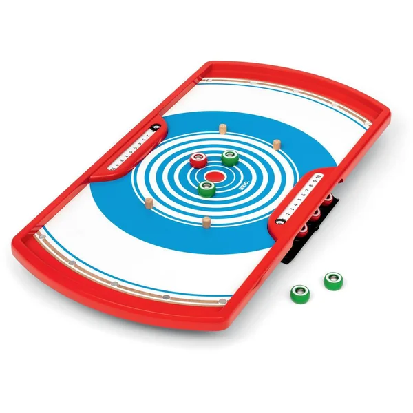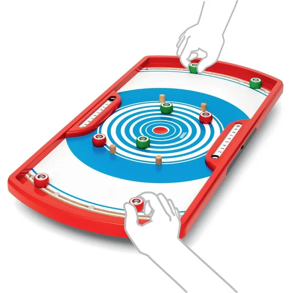 Le Curling Duo Challenge se joue en équipe, à 2 ou à 4. Tentez de placer vos palets le plus proche du centre et/ou éjectez les palets de votre adversaire pour prendre sa place. Le jeu est du même principe que la pétanque, mais version curling à jouer en équipe ! La compétition contre des amis est rendue possible grâce à un système de points.