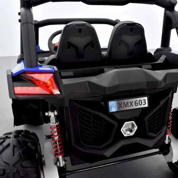 Découvrez le Buggy électrique Small MX, le véhicule utilitaire ultime pour les enfants. Avec sa capacité à affronter tous types de terrains, comme les cailloux, la terre battue ou l’herbe, grâce à ses quatre roues motrices en gomme et sa face avant ultra-sportive, ce buggy 12V est conçu pour des aventures tout-terrain. Chaque roue est équipée de 4 moteurs de 45 watts et est de type alliage avec un liseré rouge, permettant au petit pilote de se sentir comme un vrai champion. La batterie de 12 volts et 10Ah assure une autonomie d’environ 60 à 75 minutes, rarement vue sur un buggy de cette catégorie. De plus, ce buggy électrique pour enfant est équipé d’une télécommande parentale codée de 2,4 GHz, permettant aux parents de garder le contrôle de la situation si nécessaire. Pratique pour les jeunes pilotes qui ont besoin d’un peu plus d’encadrement ou pour ceux qui veulent se sentir en sécurité. Attention aux imitations, il s’agit bien d’un SSV pour enfant 12 volts.