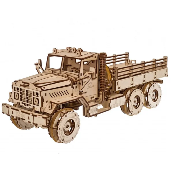 Découvrez les autres modèles de camions exceptionnels du catalogue Ugears, notamment le Véhicule tout-terrain à chenilles, le Mars rover habité, le Semi-remorque Heavy Boy, le Pickup bûcheron, le Camion de pompiers et bien d’autres encore ! Le Camion de marchandise Ugears constituera un excellent cadeau pour les amateurs d’engins, de maquettes de camions et d’histoire militaire, ou pour tous ceux qui souhaitent simplement exposer d’un gros camion à l’allure vraiment cool sur leur étagère, à la maison ou au bureau. Ce véhicule de transport lourd 6×6 est une excellente construction pour les amateurs expérimentés, et un projet intéressant pour les modélistes désireux de relever de nouveaux défis. Les gros travaux nécessitent de gros camions, et votre Camion de marchandise Ugears est prêt à travailler !