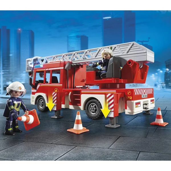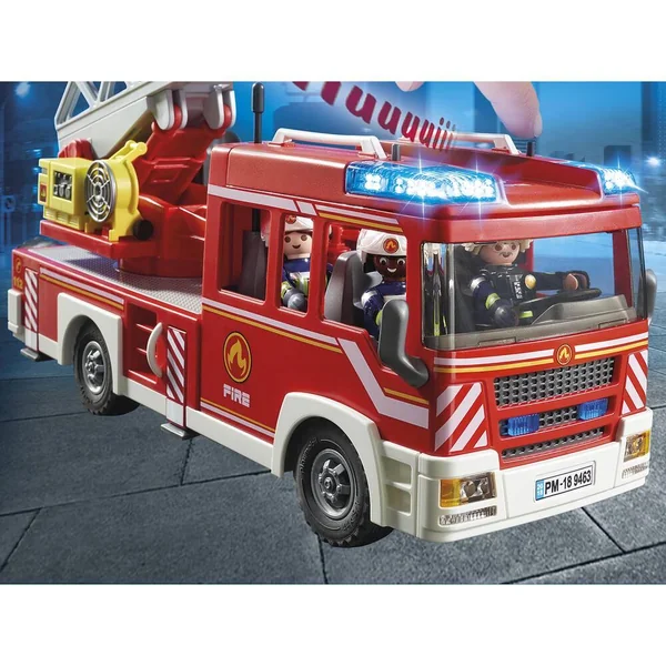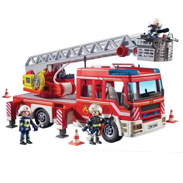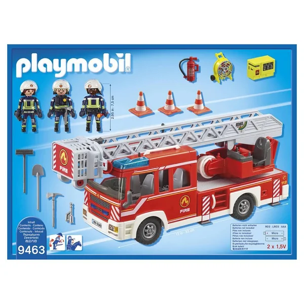 Contient 3 personnages, 1 camion avec échelle extensible et des accessoires (extincteurs, plots…). Toit amovible. Effets sonores et lumineux. La cabine du conducteur peut accueillir jusqu’à quatre personnages.