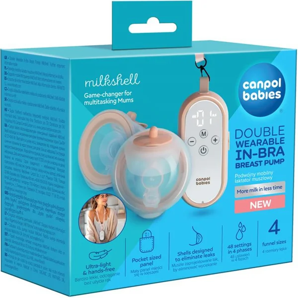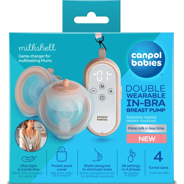 Le tire-lait Canpol babies MilkShell exprime efficacement le lait – jusqu’à 30 kPa. Les réservoirs à lait très légers offrent du confort pour les poitrines plus grandes. Le petit panneau de contrôle (corps du tire-lait) peut facilement être glissé dans une poche. La corde de suspension permet de porter le tire-lait autour du cou ou de la ceinture, augmentant ainsi le confort lors d’une utilisation quotidienne.