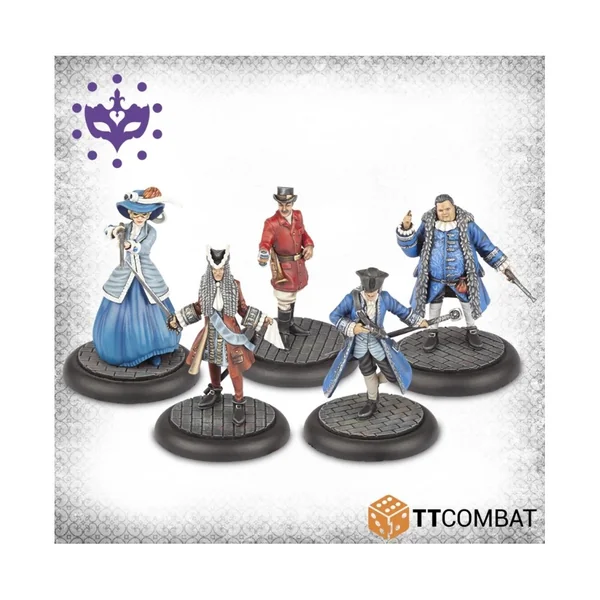 Les Patriciens comptent sur des compétences plus élevées pour gagner leurs combats, ce qui n’est pas plus évident qu’avec ce set. Deux Nobles Etrangers pouvant faire office de chef de gang – s’ils parlaient la même langue ! Un espion vénitien fournissant une puissance de feu mortelle à longue portée et deux Marchands fournissant des renforts, ce qui donne une grande source de Points de Commandement bon marché.