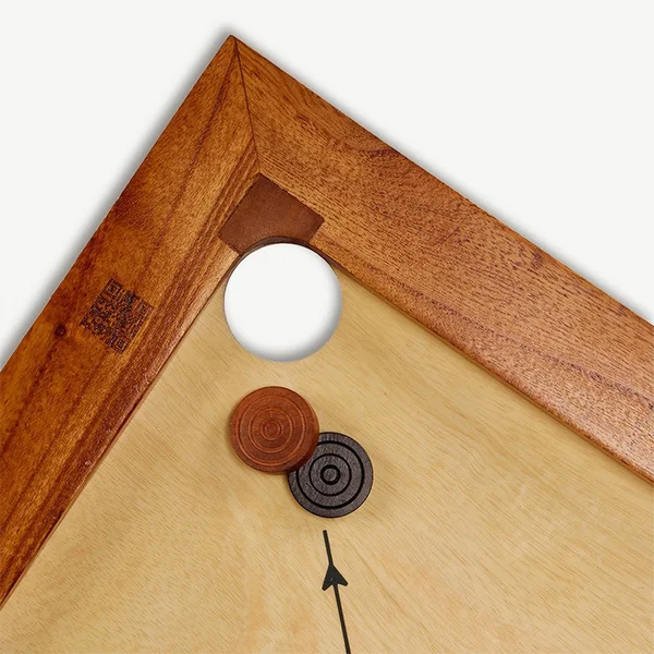 La surface de jeu est fabriquée en contreplaqué de manguier spécial de 4 mm d’épaisseur qui a été poli pour une finition lisse à faible friction et résistante à l’usure.