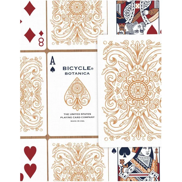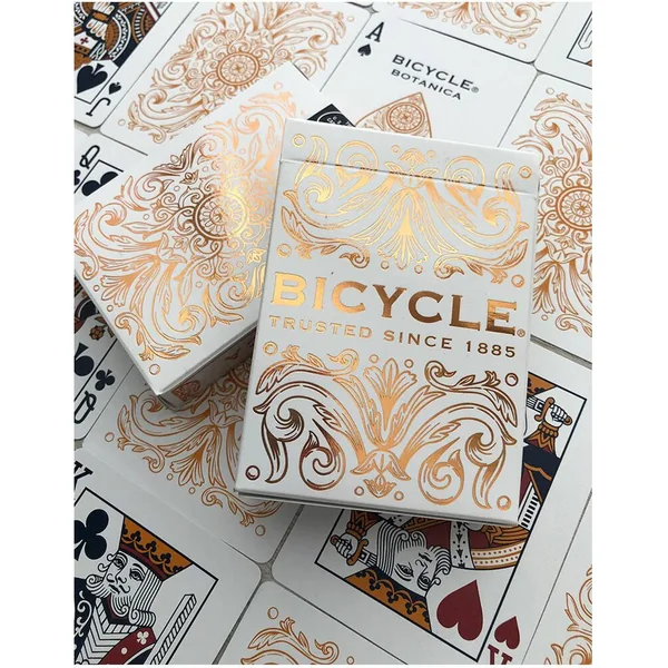 Le motif botanique des cartes Bicycle Botanica est mis en valeur par un magnifique film cuivré pour un effet intemporel. Ces cartes uniques puisent leur inspiration dans les formes élégantes et naturelles que l’on retrouve dans les jardins en pleine floraison. Ce jeu de cartes est indispensable à toute personne qui est en quête de cartes uniques, haut de gamme et idéales pour jouer mais pouvant aussi servir d’objet de décoration. Ne les cachez surtout pas, elles méritent d’être vues !