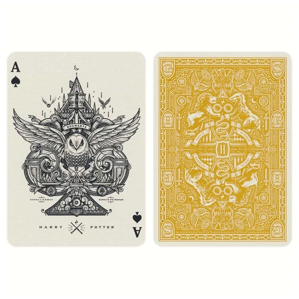 Les cartes Harry Potter présentent des illustrations entièrement personnalisées dans tous les aspects. Les As, les Jokers, le design de la boîte et les cartes de courtoisie sont directement inspirés des personnages et des événements préférés des fans du monde des sorciers.