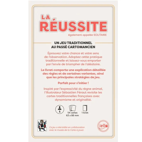 Un packaging spécialement conçu, met en avant le caractère précieux du produit : il vous suffit d’appuyer sur le logo IELLO pour l’ouvrir ! Les illustrations soignées et riches apportent une grande valeur esthétique, conférant à ce coffret un charme particulier. De plus, notre collaboration avec le Musée Français de la Carte à Jouer garantit la légitimité du produit, et les règles détaillées incluses permettront de rendre ces jeux, parfois jugés complexes, accessibles au plus grand nombre.