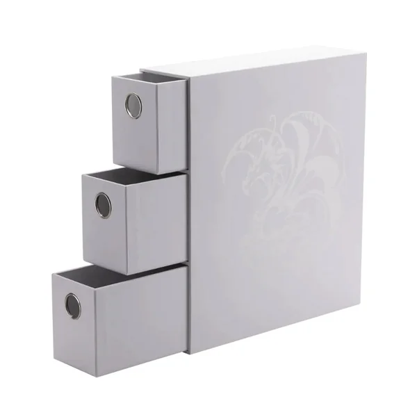 Les tiroirs à cartes Fortress sont une option de rangement élégante et sécurisée de la collection TCG pour votre système d’étagères. Le cadre robuste maintient les tiroirs en position verticale et les protège contre les chutes accidentelles. Chacun des trois tiroirs peut contenir plus de 435 cartes à pochette unique, 5 boîtes Dragon Shield DS100 ou 17 Cube Shells. Chaque tiroir est doté d’un séparateur en mousse qui peut être utilisé pour sécuriser votre collection.