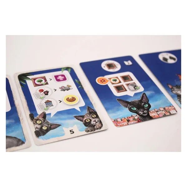 Cathood: Family and Friends introduit 53 nouvelles cartes, réparties en 5 nouveaux types (Événements, Connaissances, Personnalité, Objectifs et Chatons), 2 nouvelles tuiles de quartier et 8 cubes d’une nouvelle ressource, offrant plus de difficulté et de nouvelles façons de jouer à Cathood.