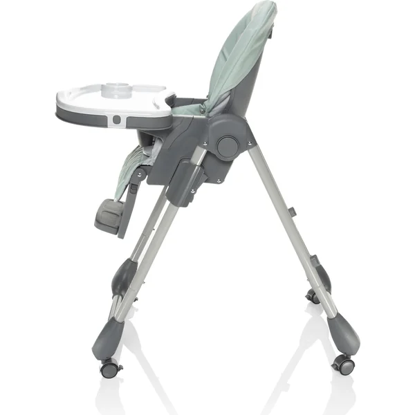 La chaise haute Monti 2 peut être facilement pliée et, grâce à ses dimensions compactes une fois pliée, elle ne prendra pas beaucoup de place. De plus, elle est équipée de roues avec frein pour une manipulation et un déplacement faciles. Pour une manipulation aisée, la tablette peut être accrochée à la chaise, de sorte qu’elle ne gêne pas lorsqu’elle n’est pas utilisée.