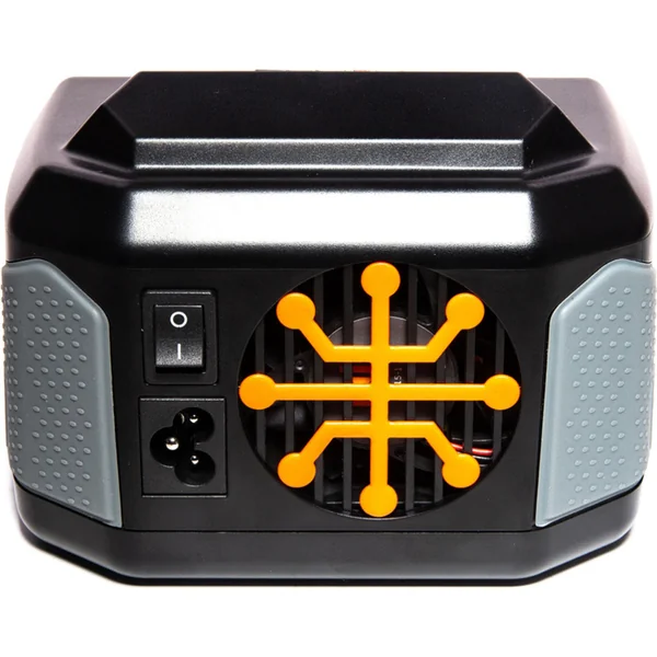 Le boîtier élégant du chargeur s’adapte parfaitement à votre bureau et à votre boîte de transport. Le câble d’alimentation secteur est amovible pour un transport plus facile. Les poignées en caoutchouc vous aident à maintenir le chargeur en toute sécurité lors de la connexion et du retrait des batteries. Les ports USB d’entrée et de sortie vous permettent de mettre à jour le firmware du chargeur et de charger des appareils secondaires. Parmi les autres fonctionnalités, on trouve un interrupteur d’alimentation intégré et un ventilateur de refroidissement à faible bruit.