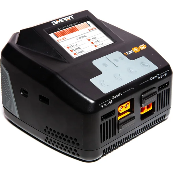 Avec une puissance allant jusqu’à 200 W par sortie ou 380 W sur une seule sortie pour une charge rapide et la capacité de charger des batteries sur des sorties intégrées avec des connecteurs IC3® ou IC5®, le chargeur S2200 offre un moyen polyvalent et véritablement sans tracas de charger. Le chargeur S2200 est universel, charge tous les types de batteries connus et est compatible avec les connecteurs EC3™ et EC5™. Utilisez-le avec les batteries Spektrum Smart G1 ou G2 et vous serez impressionné par sa fonctionnalité incroyable et sa puissance.