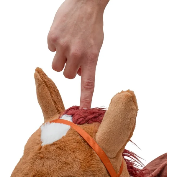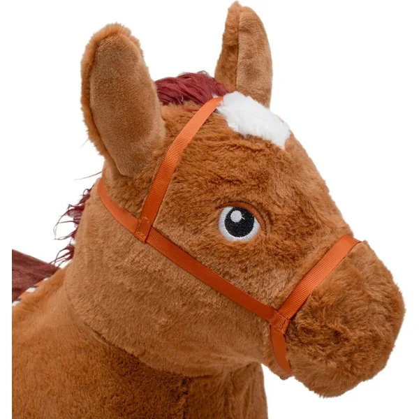 Le sauteur est recouvert d’une peluche douce et antidérapante, très agréable au toucher. Il est équipé d’un module sonore – en appuyant entre les oreilles, il émet un son réaliste de poney, ce qui stimule l’imagination et motive à jouer activement.