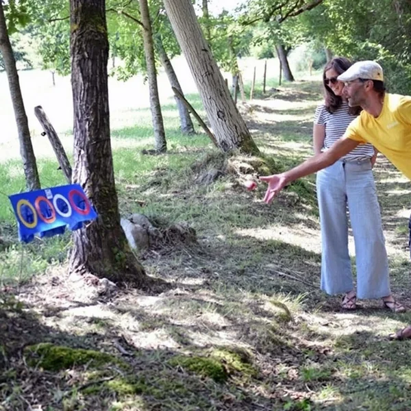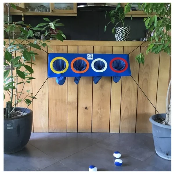 Cinco est le jeu d’adresse indoor outdoor qu’il faut absolument posséder. Il est totalement inédit et offre une grande liberté de jeu. Il est nomade, facile à transporter, facile à installer. C’est un jeu de plein air, d’extérieur pour jouer dans son jardin, sur sa terrasse, en forêt, au stade, à la plage. Mais il peut se jouer aussi bien dehors que dedans, à la maison, dans une ludothèque, dans un gymnase…. La toile de jeu munie de sandows est extrémement adaptables au terrain dont on dispose : deux arbres, deux chaises, deux poteaux, un grillage, une barrière… tout est possible avec le Cinco. On peut même installer le jeu à la verticale !