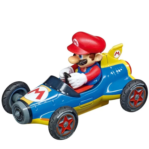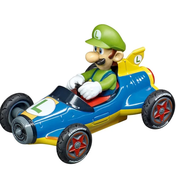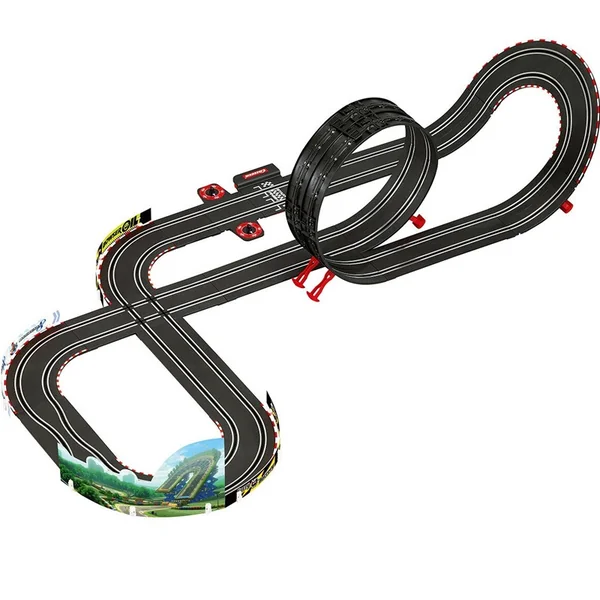Mario et Luigi filent à toute vitesse au volant du kart Mach 8 sur le circuit Carrera GO!!!. Avec ses 5,3 mètres de long et ses nombreuses fonctionnalités, dont une boucle, un survol, un passage étroit et une intersection, le circuit promet des courses palpitantes.