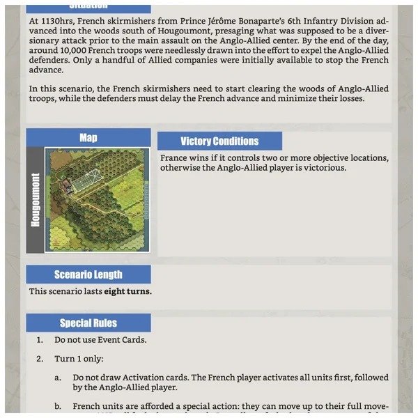 Le Livre Compagnon Close Quarter Battles Waterloo est la ressource ultime pour les joueurs qui préfèrent s’engager dans des batailles virtuelles via Vassal, Tabletop Simulator ou nos éditions DLC numériques sur Steam. Conçu pour la praticité, ce Livre Compagnon inclut l’intégralité des règles du module et du livret de scénarios présents dans le jeu de plateau de base — ainsi que les tableaux et graphiques essentiels — permettant aux joueurs de vivre l’expérience sans avoir besoin de l’édition physique complète.