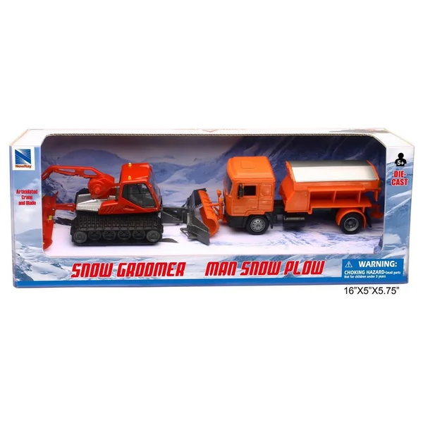 Réplique du camion Man F2000 Chasse neige en Die-Cast avec lame et saleuse pivotantes, avec dameur de pistes die cast muni d’une lame avant pivotante, d’un treuil de levage et d’une lame de lissage arrière.