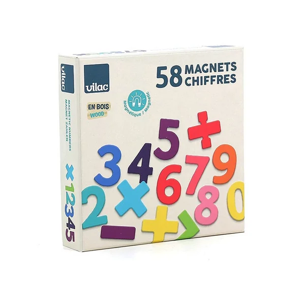 Êtes-vous incollable sur vos tables de multiplication ? Prenez-vous au jeu du calcul avec notre coffret de magnets chiffres en bois et accompagnez votre enfant dans sa découverte des chiffres et des signes mathématiques. Avec une taille adaptée aux petites mains, nos magnets en bois vont lui apprendre à reconnaître la forme et la valeur de chaque chiffre. Le petit plus ? Des couleurs très pop et actuelles, pour rendre le calcul ludique !