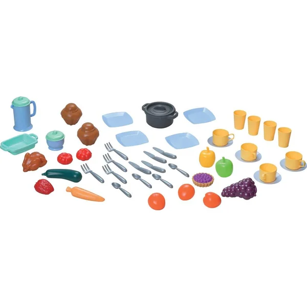 À l’intérieur de ce coffret, les enfants découvriront un assortiment de viennoiseries appétissantes, de fruits et légumes colorés, et même une cocotte avec son couvercle. Le service à thé et à repas inclut des assiettes, verres, tasses et tous les accessoires nécessaires pour organiser de délicieux festins imaginaires. Fabriqué en plastique alimentaire, chaque élément est conçu pour être sans danger et lavable à l’eau savonneuse. Le coffre de rangement pratique, orné de deux poignées, permet de transporter tous ces éléments facilement.