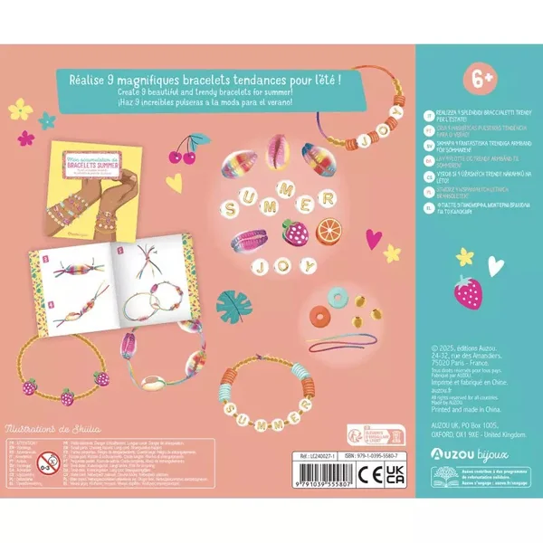 Crée une accumulation de 9 bracelets tendances pour l’été avec du matériel de qualité : des perles heishis aux tons frais, des perles dorées, des coquillages pimpants, et un fil élastique arc-en-ciel, le tout accompagné de perles lettres !