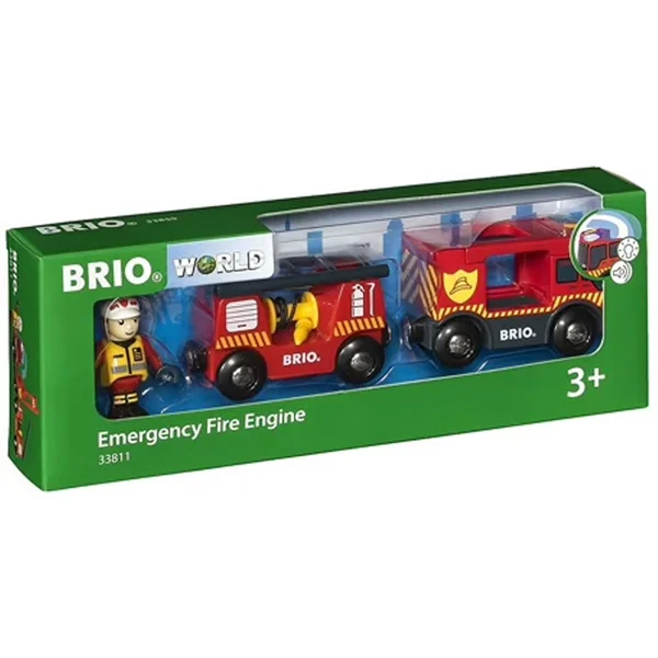Un feu vient de se déclencher, prenez place dans le camion de pompier sonore et lumineux pour éteindre l’incendie dans le Brio World ! Doté d’un camion de pompier au design réaliste, avec une place dédiée au pompier, appuyez sur le bouton à l’avant du camion pour déclencher la sirène et le gyrophare. Le wagon dispose d’une échelle et d’une lance à incendie déroulante pour permettre au pompier d’éteindre le feu.