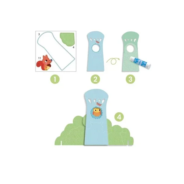 Une activité de collage pour créer une délicieuse petite scène à poser. L’enfant assemble des éléments tout plats avec de la colle et crée du volume en les superposant.