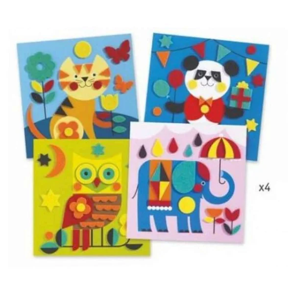Réalisez pas à pas de magnifiques tableaux avec des pièces de feutrine prédécoupées et autocollantes à utiliser comme des gommettes. 4 jolis tableaux à créer : un éléphant, un lion, un panda et une chouette.
