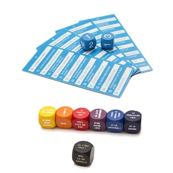 Contenu du Jeu : 9 Dés, 4 Fiches, Règle du jeu.