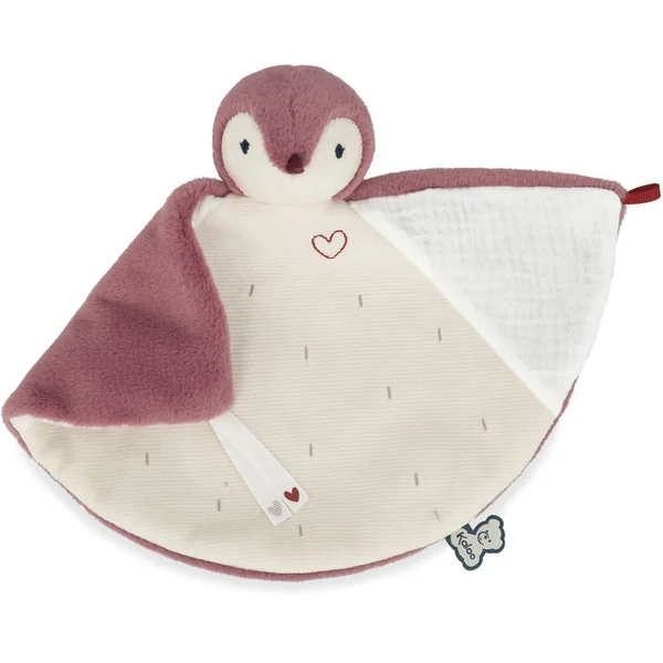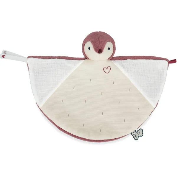 Ce joli doudou manchot rose de 24 cm de hauteur est composé de 3 matières différentes pour développer les sens de bébé. Avec sa forme originale, toute en rondeur, il sera toujours là pour réconforter bébé lors des moments de séparation. La mousseline de coton présente sur les ailes permet de garder au mieux les odeurs. Ainsi, les parents pourront mettre près d’eux le doudou afin que celui-ci s’imprègne de leur odeur et puisse envelopper bébé dans une vague de réconfort quand il le prendra. Les ailes du manchot se nouent entre elles par des rubans ornés d’un joli cœur, symbolisant la protection et le lien d’attachement. Il est présenté dans une jolie boîte cadeau personnalisable et qui peut être réutilisée comme étui de rangement. Lavable en machine à 30°. Rembourrage en polyester recyclé. Dès la naissance.