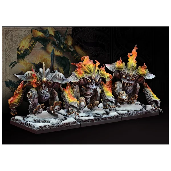 Les corps d’acier et de pierre d’un Inferno Automata renferment une fournaise en furie qui brûle les restes fumants d’une bête de Destruction. Affaibli par la défaite, cet esprit démoniaque est lié à l’imposante structure métallique, insufflant à l’Automate l’intellect cruel et l’agressivité sans limite de cet esprit torturé. L’acier et la pierre se déforment et se tordent sous l’influence maléfique de ce passager infernal, conférant aux Inferno Automata leurs visages démoniaques et leurs griffes cruelles.