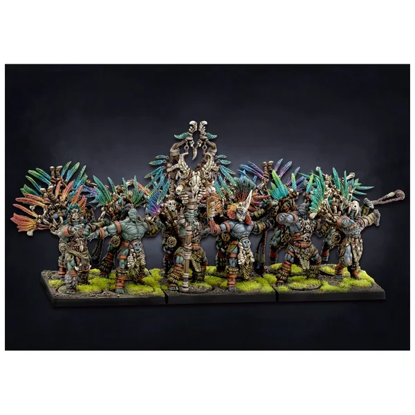 L’humble fronde qu’ils brandissent est une arme d’une efficacité surprenante lorsqu’elle est maniée par un humain compétent. Dans les mains d’un W’adrhŭn expérimenté, ces armes primitives deviennent une terreur. Soutenues par la sauvagerie de leurs manieurs, peu de formations peuvent résister à une double volée suivie d’une charge de ces redoutables guerriers, qui se sont fait les dents en chassant les proies les plus dangereuses dans la jungle comme dans les plaines.