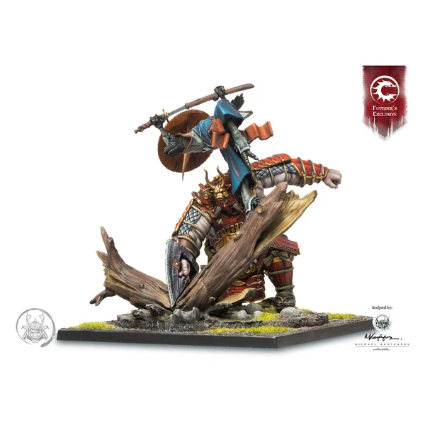 Mais l’occasion de mettre à l’épreuve sa conviction et sa puissance face à un pair, et de renforcer son Chemin et sa position, est rare. Peu nombreux sont ceux qui refuseraient un duel. Ce Diorama, sculpté par Michael Kontraros, comprend 2 figurines, ainsi que tous les socles nécessaires pour les exposer sur une étagère ou les aligner sur le champ de bataille. Les modèles inclus peuvent être utilisés soit comme Daimyo, soit comme Oyabun, pour refléter la multitude de chemins vers l’Éveil que les Yoroni peuvent emprunter. Il s’agit d’une édition numérotée et exclusive aux Fondateurs, limitée à 1337 exemplaires.