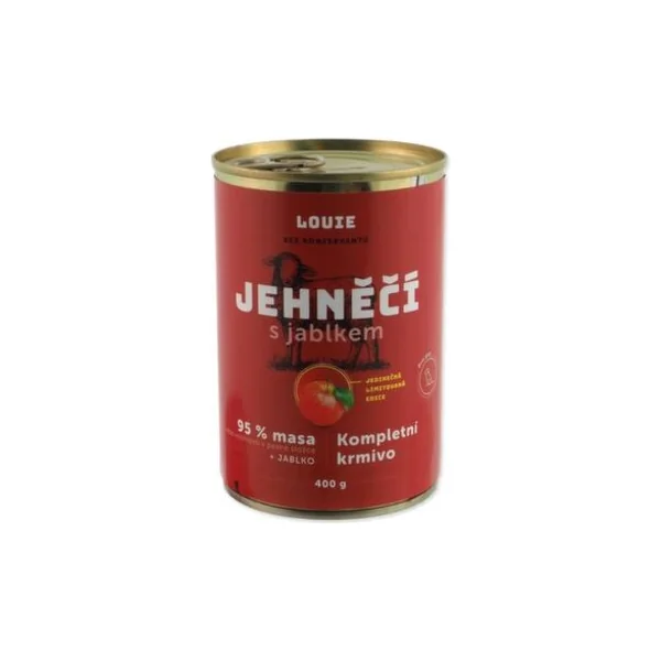 - Principales caractéristiques de la conserve pour chiens LOUIE agneau (95% en matière sèche) avec des pommes, 400 g