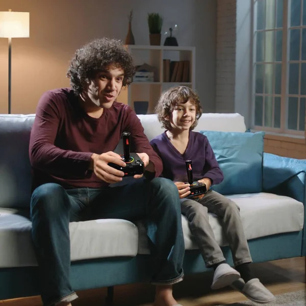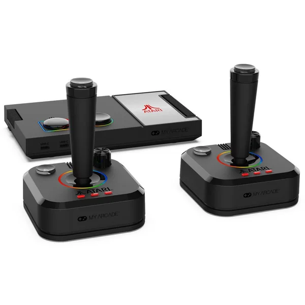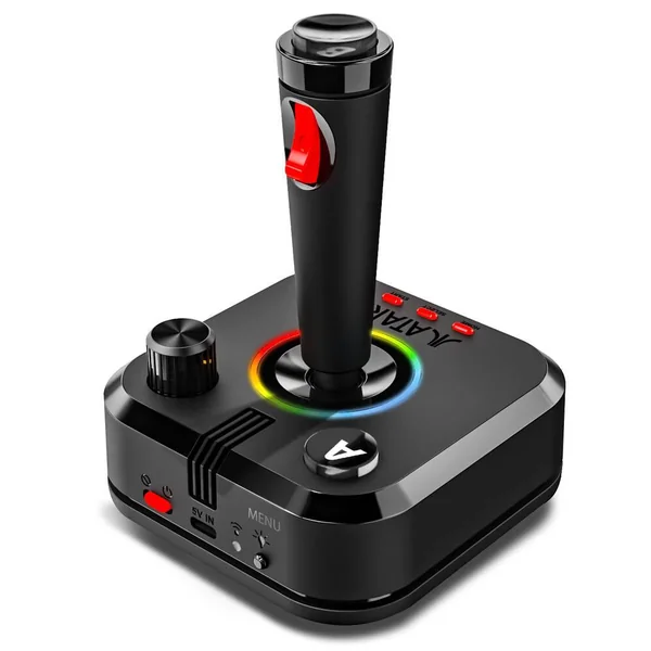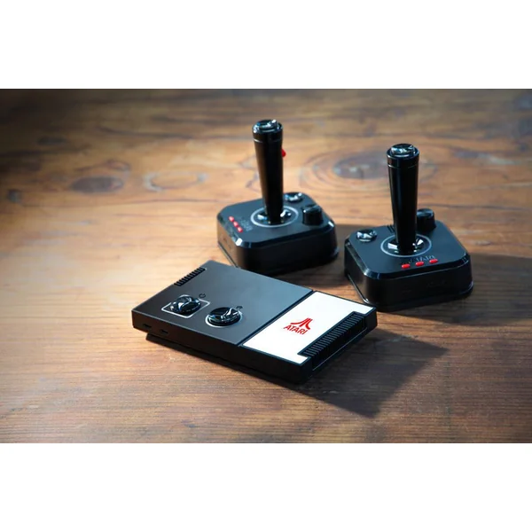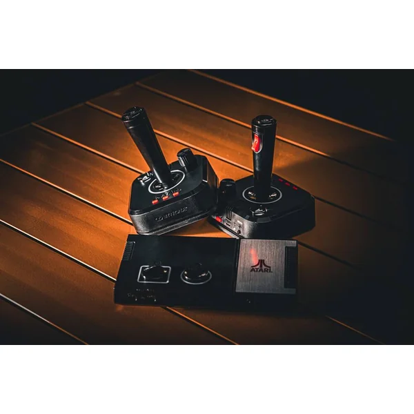 Le système se connecte directement à votre télévision, garantissant une installation simple et rapide. Il est fourni avec deux joysticks sans fil 2,4 GHz, inspirés des modèles originaux d’Atari, qui permettent une expérience de jeu authentique et sans fil.