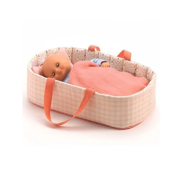 Un couffin léger et pratique avec ses anses souples pour emmener sa poupée partout avec soi. Un véritable nid douillet avec sa couverture douce et son oreiller pour que bébé dorme bien installé au chaud.