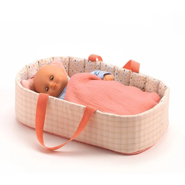 Un couffin léger et pratique avec ses anses souples pour emmener sa poupée partout avec soi. Un véritable nid douillet avec sa couverture douce et son oreiller pour que bébé dorme bien installé au chaud.
