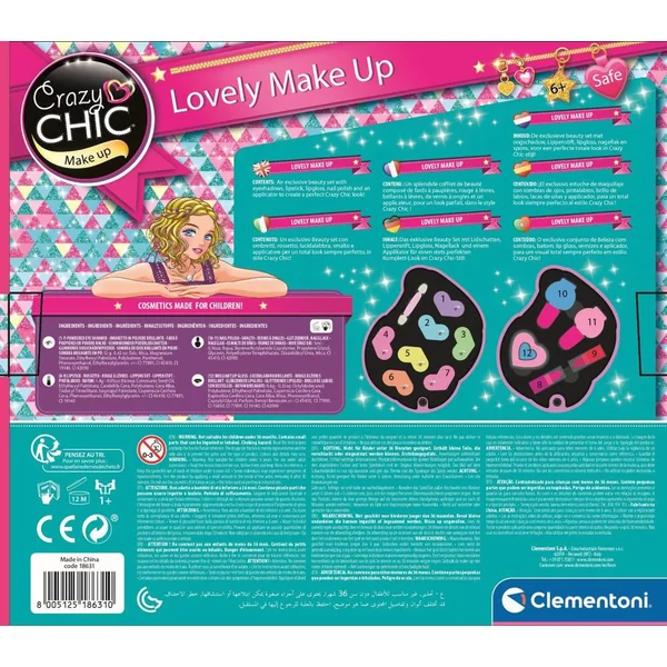 Un coffret de maquillage avec 2 palettes remplies de fards à paupières, de rouges à lèvres et de vernis à ongles. Pour réaliser un maquillage magique, il y a également 3 vernis à ongles et 3 rouges à lèvres en plus pour remplacer ceux contenus dans la palette pour encore plus de plaisir ! Une expérience de jeu complète et sure. Le maquillage a été testé pour garantir une sécurité optimale. Les petites filles peuvent s’amuser en suivant des tutoriels en ligne, ou en suivant les conseils de leurs amies ou de leur maman.