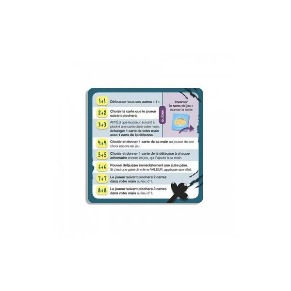 Piochez une carte dans le jeu de votre voisin, puis défaussez deux cartes de même valeur pour déclencher des effets amusants et embêter les adversaires !