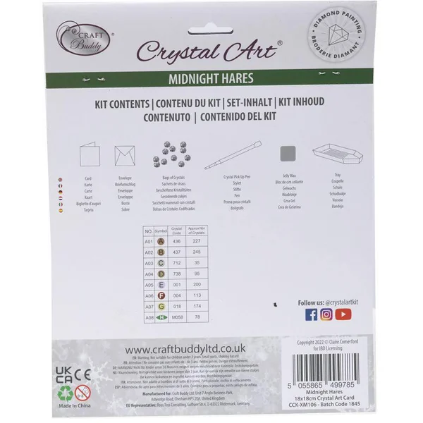 Contenu du kit carte : 1 carte auto-adhésive 18 x 18 cm, 1 stylet à diamanter, de la cire, des strass colorés et 1 enveloppe. Un kit créatif pour créer une carte de voeux originale ou une carte d’anniversaire tout en cristaux scintillants ! Facile à réaliser, toute la surface est imprimée, seules les zones adhésives et numérotées sont à diamanter. Une enveloppe est incluse dans chaque kit, c’est pratique la carte est prête à être envoyée ! DU NOUVEAU DANS LA BRODERIE DIAMANT ! Amusant, stimulant, brillant…! Le principe de la broderie diamant est simple et ludique : réaliser une carte scintillante ou un tableau pré-encadré sur lequel le modèle est numéroté. Chaque couleur de strass correspond à un numéro. Il suffit de coller les strass colorés sur le support adhésif. Une activité zen à tester dont on ne peut très vite plus se passer ! Tout le matériel nécessaire est inclus dans les kits !