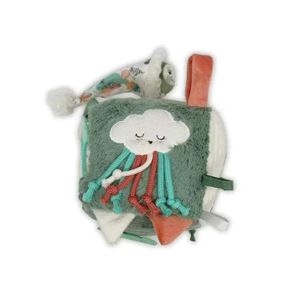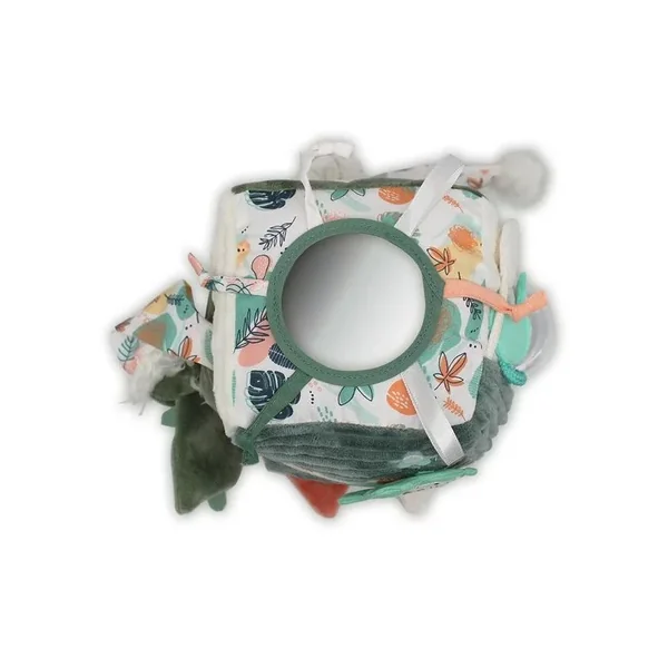 Dans son parc ou sur un tapis d’éveil, bébé pourra s’amuser avec son cube d’activités Chillos le paresseux ! Ce jouet d’éveil vert et coloré est complet et original. A lancer, mordiller ou secouer, c’est l’éclate assurée ! Le jouet d’éveil bébé est idéal pour éveiller tous ses sens grâce à son miroir, son papier bruissant, son hochet, son anneau de dentition…