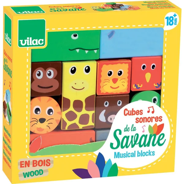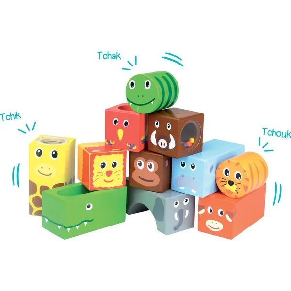 Apprendre à toucher, manipuler tout en découvrant des sons, c’est possible avec les 11 cubes sonores en bois.