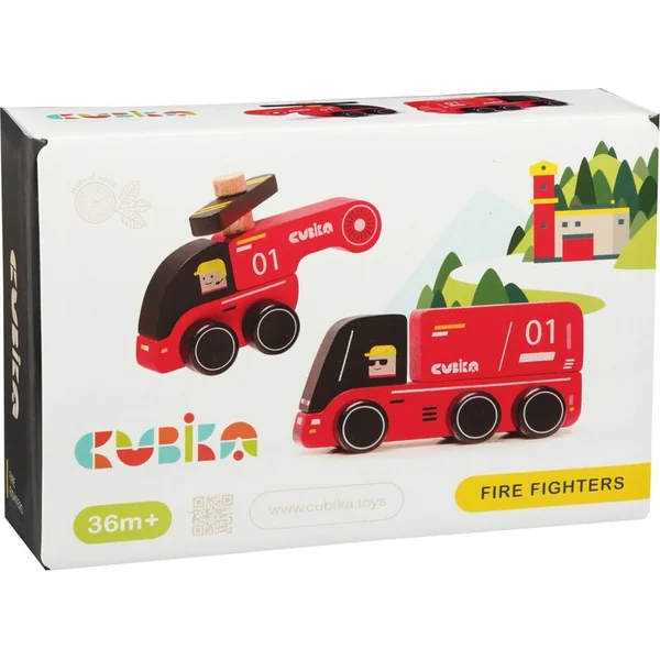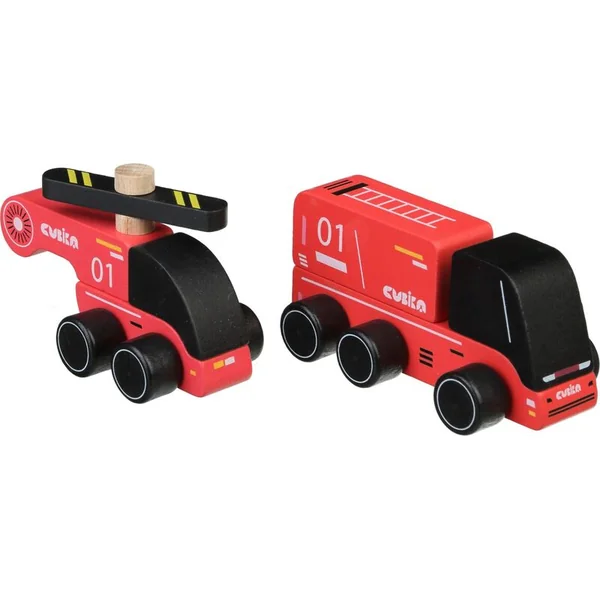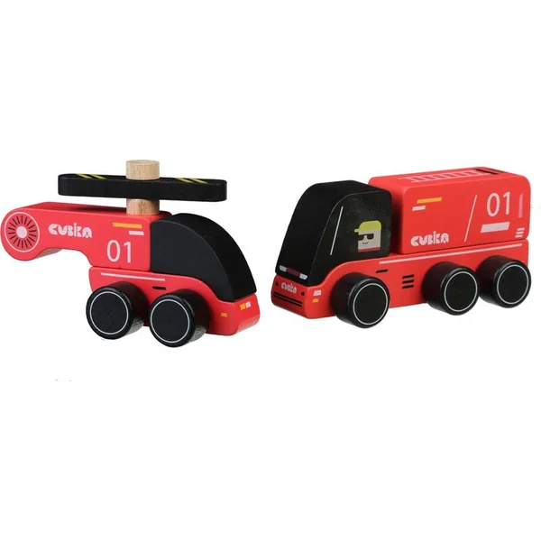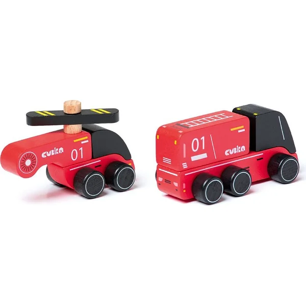 Les pompiers sont un ensemble en bois en deux parties comprenant un camion de pompiers et un hélicoptère.