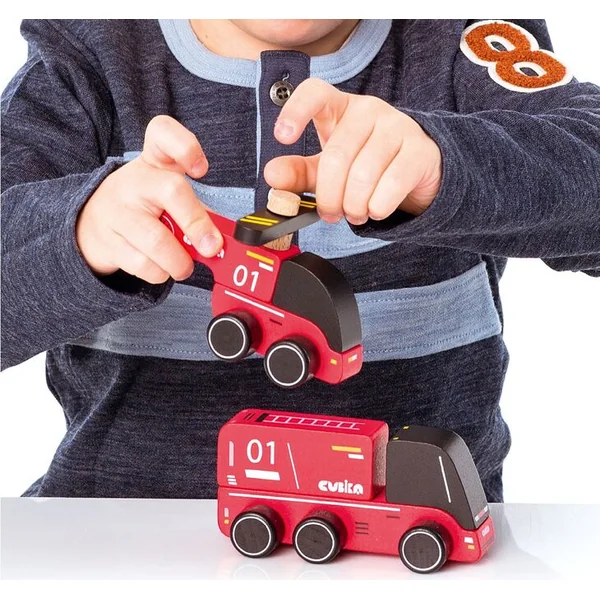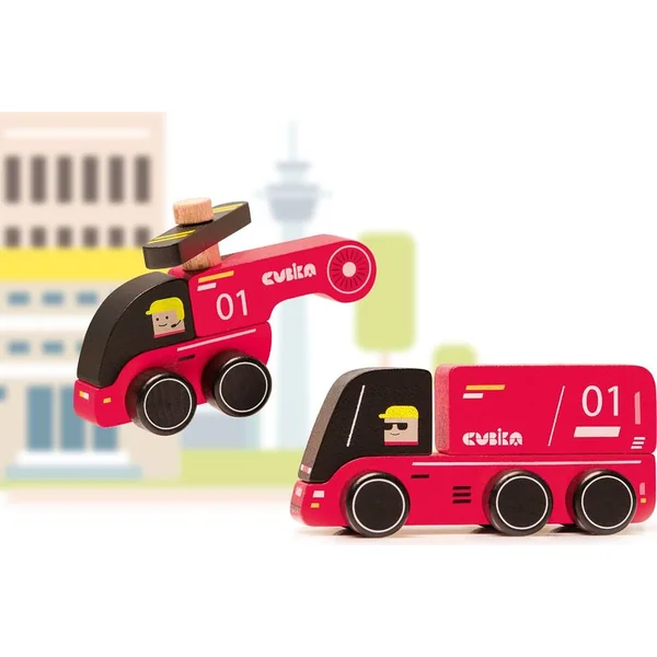 CUBIKA 15559 Pompiers – voiture en bois avec hélicoptère
