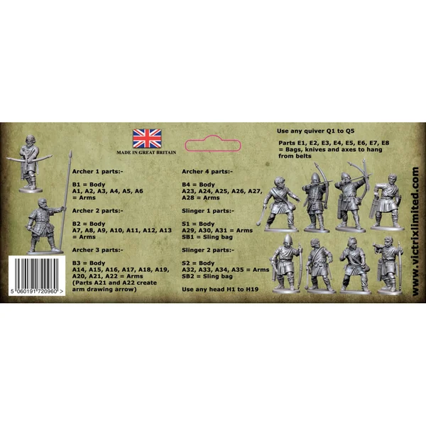 Le set Dark Age Archers and Slingers comprend 36 figurines en plastique 28mm hautement détaillées. Il y a une grande variété d’options de corps/armure et d’armes, cela vous donne la liberté de décider de la pose de vos figurines et de la composition de votre armée.