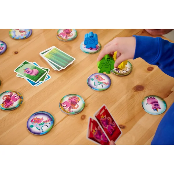 Le géant d’une couleur de carte jouée se déplace toujours dans la forêt. Il court jusqu’à une licorne du type de celle qui figure sur la carte qui vient d’être jouée. La licorne peut être ramassée et gardée immédiatement.