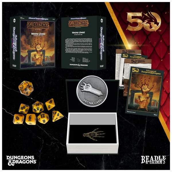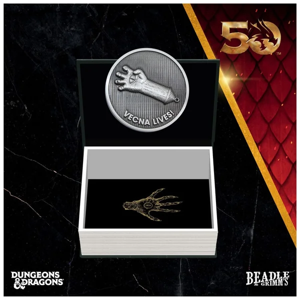 • Une pièce de collection en métal de 5 cm, commémorant l’aventure et les 50 ans de D&D