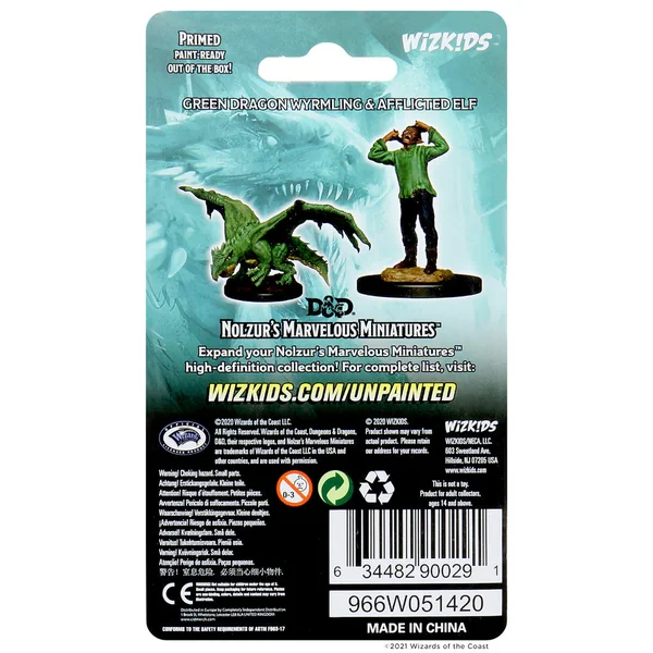 D&D Nolzur’s Marvelous Miniatures: Green Dragon Wyrmling & Afflicted Elf