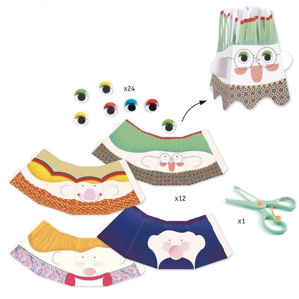 A l’aide de la paire de ciseaux sécurisée, l’ enfant va découper les personnages, comme indiqué dans le livret puis leur ajouter leurs yeux afin de réaliser des bonhommes très rigolos avec Monsieur Royal, Monsieur En pétard, Monsieur Moustachu et Madame la bonde.
