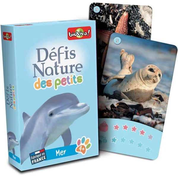 Défis Nature des petits permet aux plus jeunes de découvrir les bébés animaux de la mer. Pariez et comparez le poids ou le nombre de bébés à la naissance pour collecter toutes les cartes du jeu et remporter la partie. La boîte contient 34 cartes et 1 livret pédagogique contenant la règle du jeu. Durée d’une partie : 15 mn. De 1 à 6 joueurs.