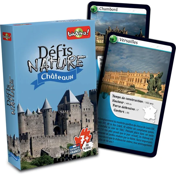 Défis Nature vous emmène à la rencontre des châteaux les plus majestueux. Découvrez les édifices les plus anciens, puis pariez sur les points forts de vos monuments pour collecter toutes les cartes du jeu et remporter la partie. Alors, prêts à relever le défi ? Contenu : 36 cartes et 1 règle du jeu. De 2 à 6 joueurs. Durée : 20 mn. Fabriqué en France. Format pratique et facile à emporter.
